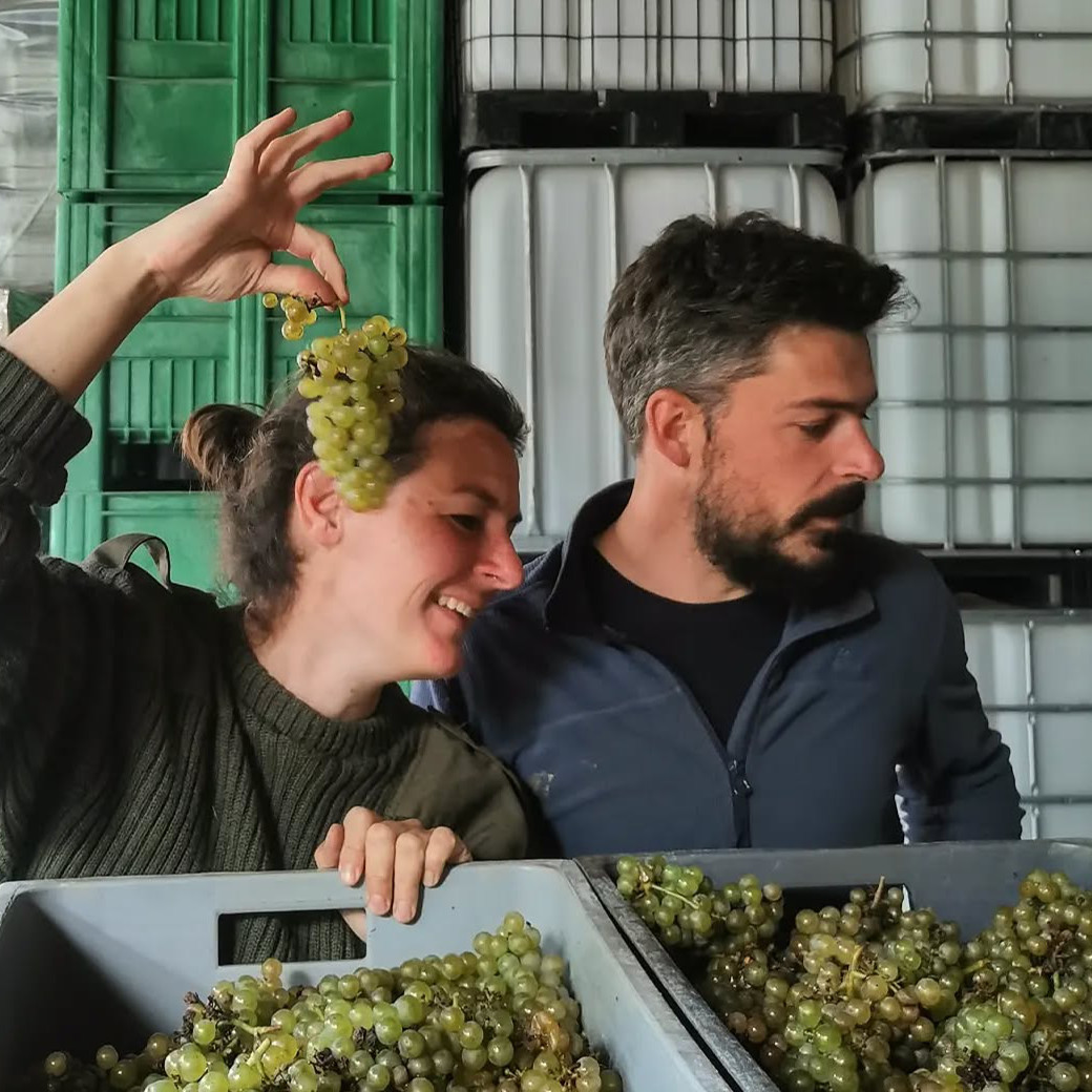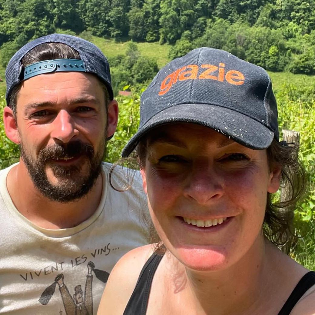 このワインを語る上で欠かせないのが、造り手のリザンヌ・ヴァン・ソンとエドゥアール・グイエットです。 オランダ出身のリザンヌは、もともと凄腕のソムリエ。ワインを「提供する側」にいた彼女は、ロワールの名手ノエラ・モランタンのもとで修業を積み、「造る側」へと転身しました。 パートナーのエドゥアールと共に、ビュジェの険しい斜面で、化学物質に頼らない真摯なブドウ栽培を行っています。ソムリエとしての「確かな味覚」と、造り手としての「溢れる情熱」。この二つが融合しているからこそ、彼らのワインは驚くほど洗練され、かつ親しみやすいのです。