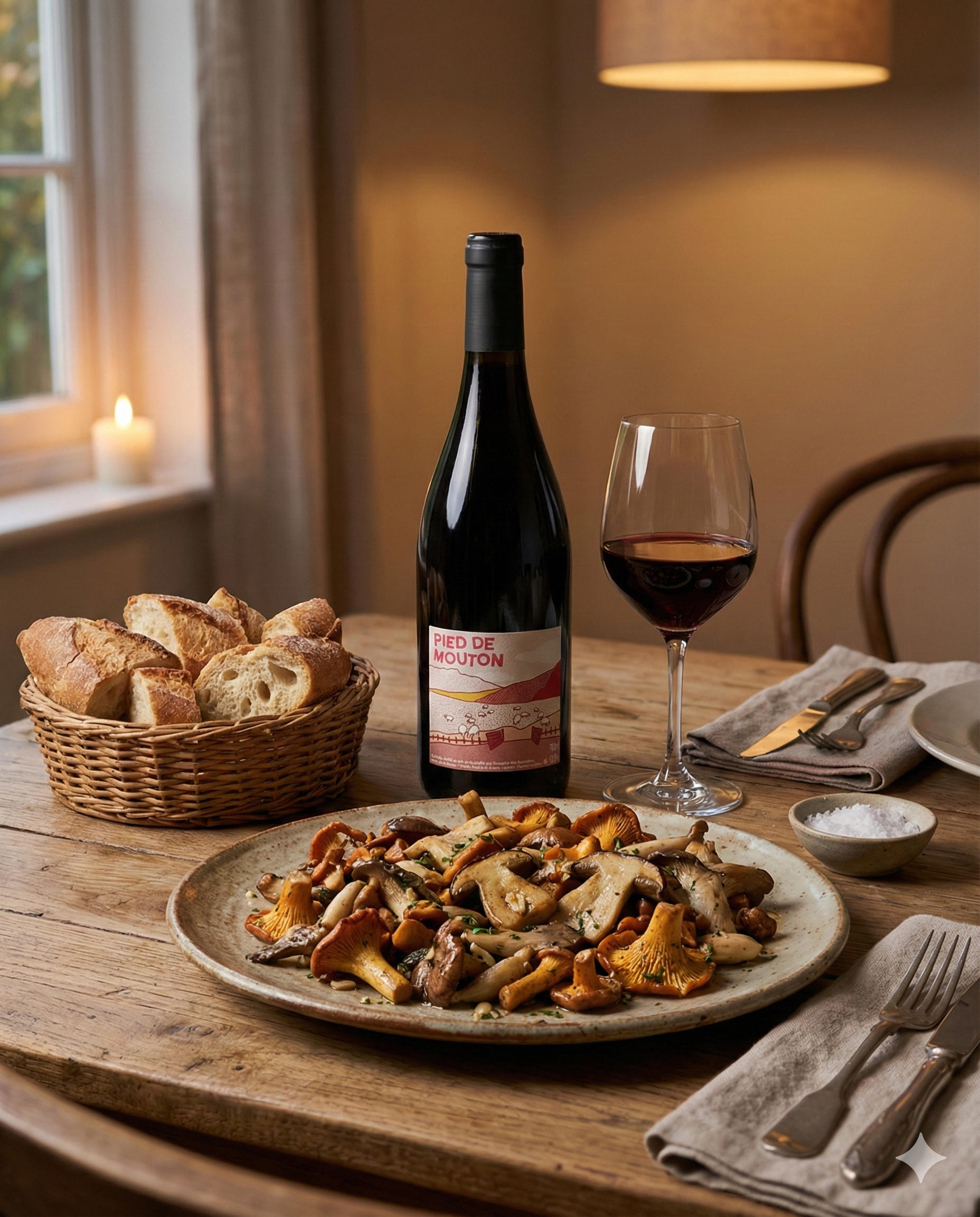 そこでご紹介したいのが、フランスの秘境、ビュジェ地方から届いた**「ピエ・ド・ムートン(Pied de Mouton)」**です。 名前の由来は、森に自生する「シロカノシタ(羊の足)」というキノコ。その名の通り、どこか素朴で、大地と森の生命力を感じさせる赤ワインです。 ナチュラルでピュア、果実味と酸のバランスが良く、土地の個性を素直に表現するスタイルが特徴です。